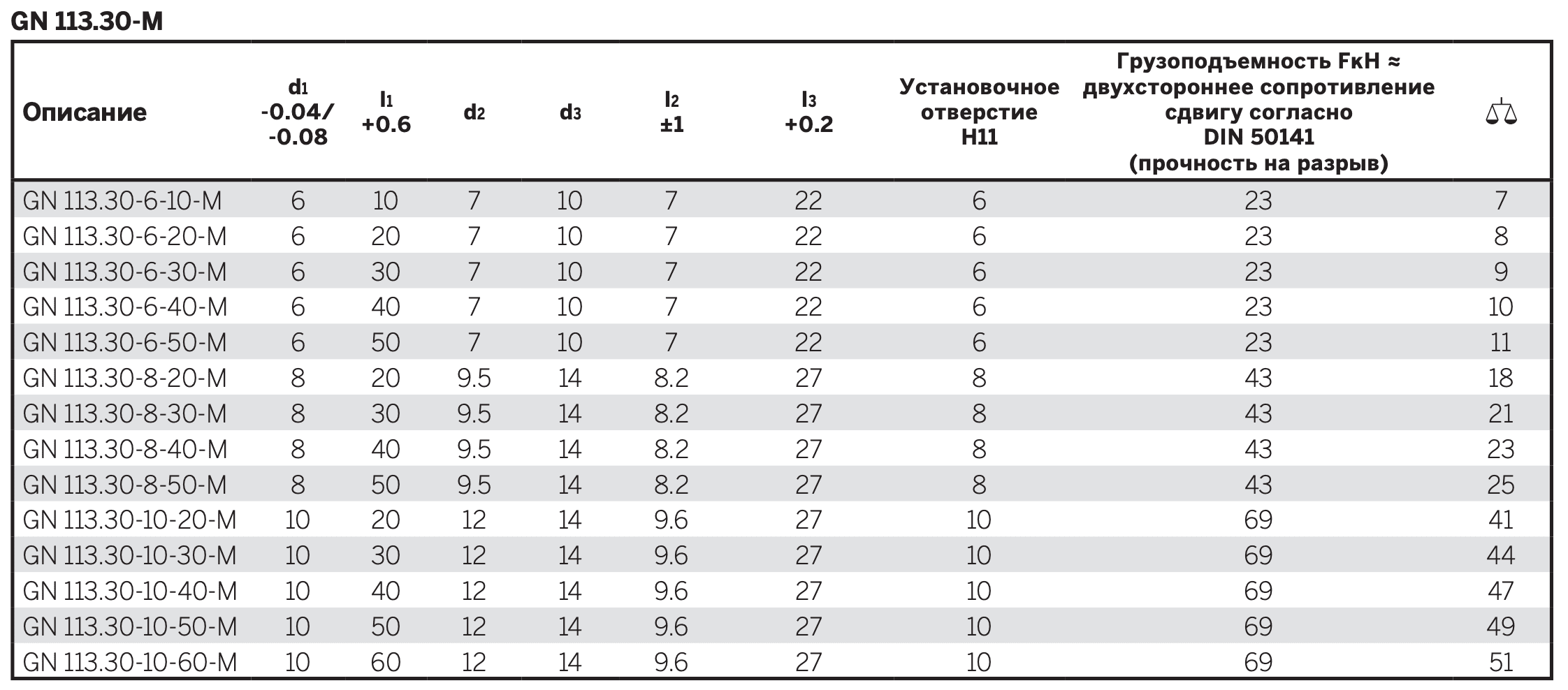 Штифт с шариковыми фиксаторами GN 113.30-6-50-M ELESA+GANTER