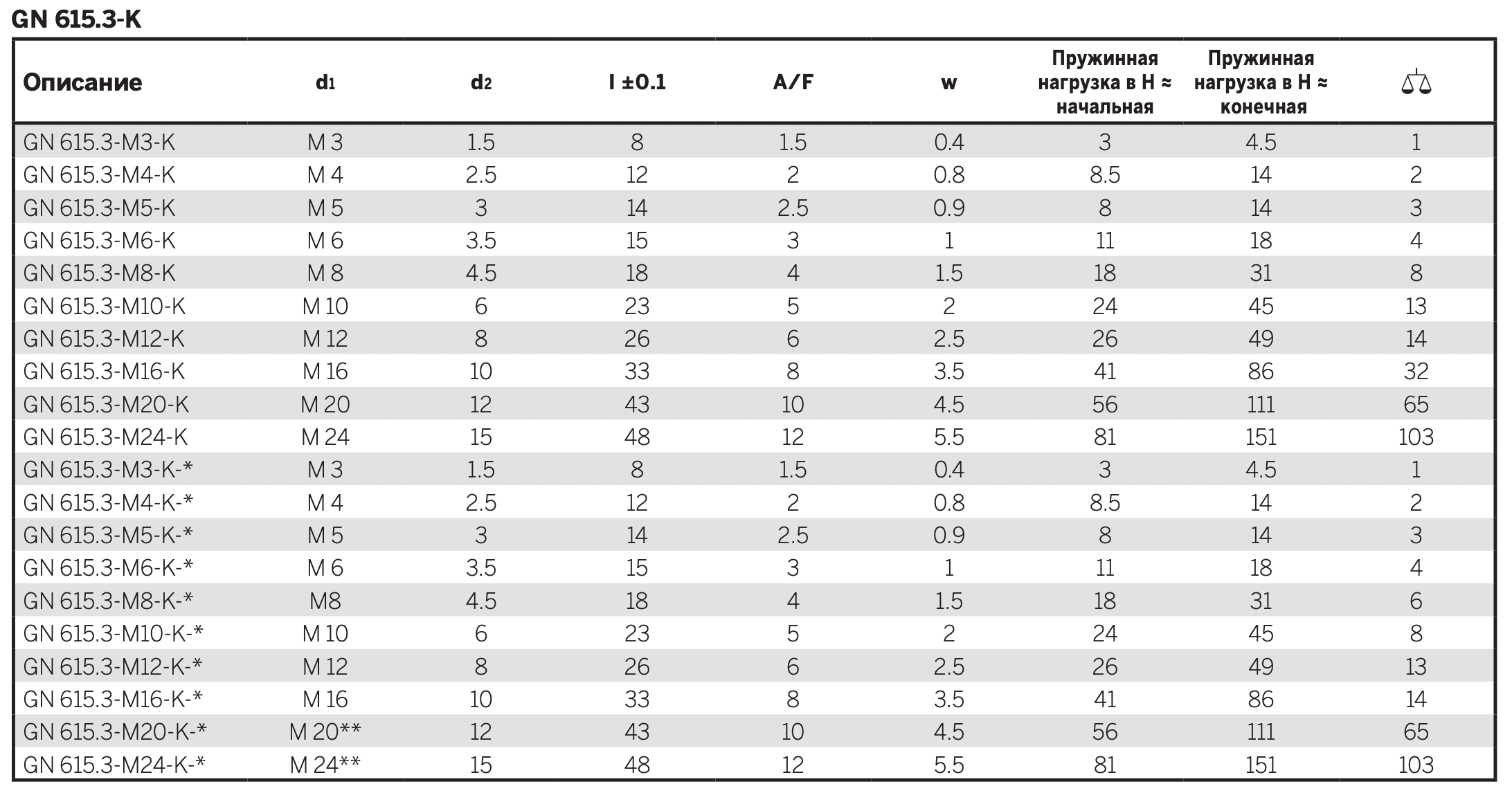 - Тип KN: нержавеющая сталь, стандартная нагрузка пружины