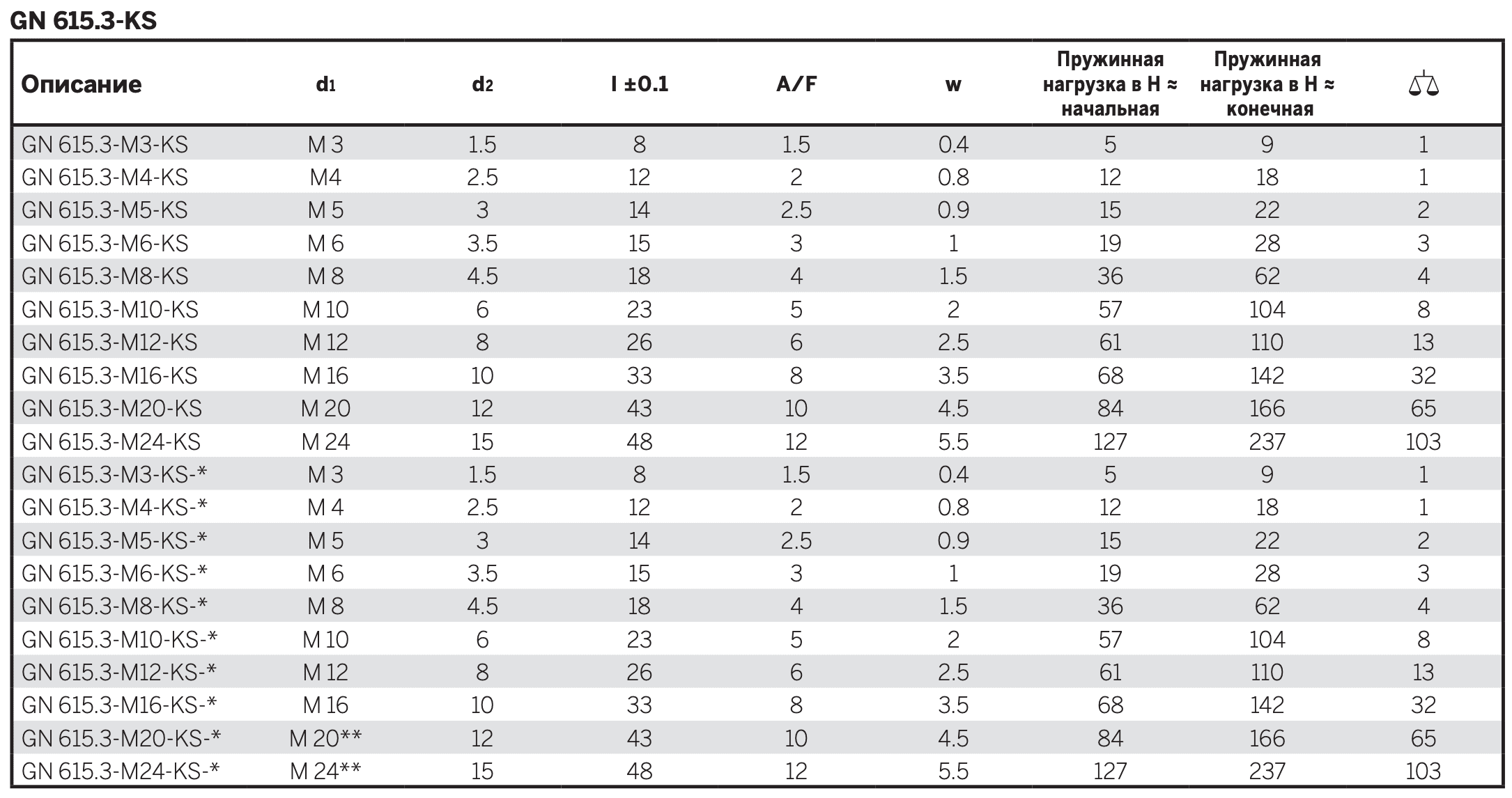 - Тип KSN: нержавеющая сталь, повышенная нагрузка пружины