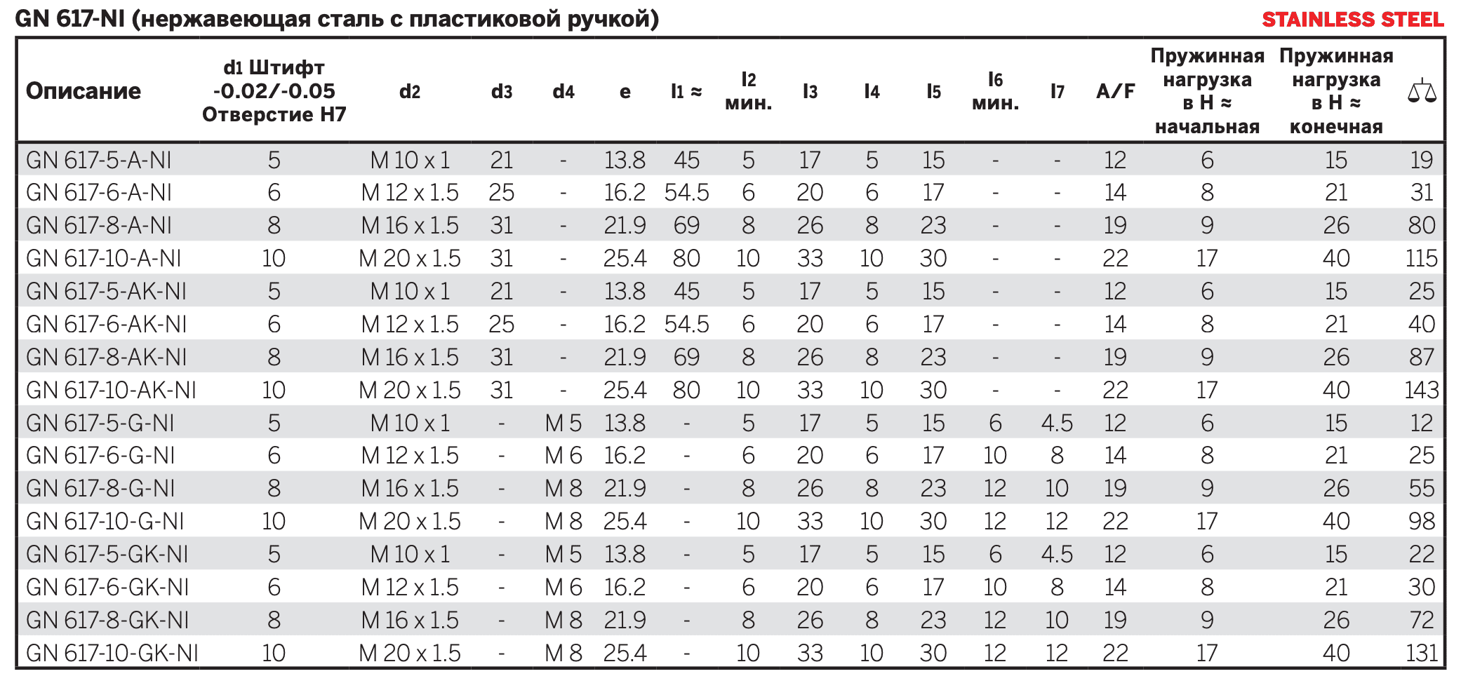 Тип AKN: с ручкой из нержавеющей стали, с контргайкой