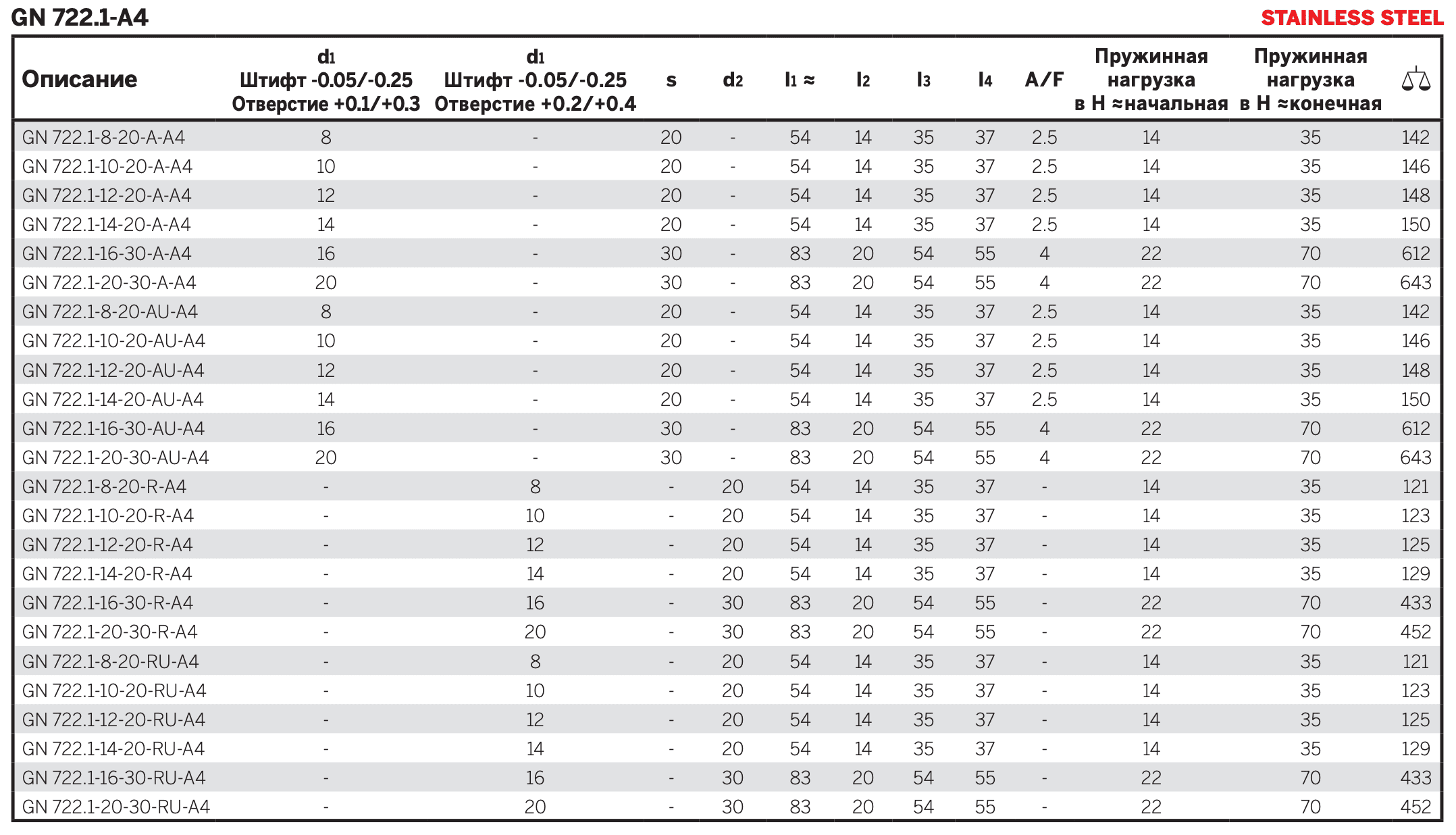 Пружинная защёлка GN 722.1-14-20-RU-A4 ELESA+GANTER