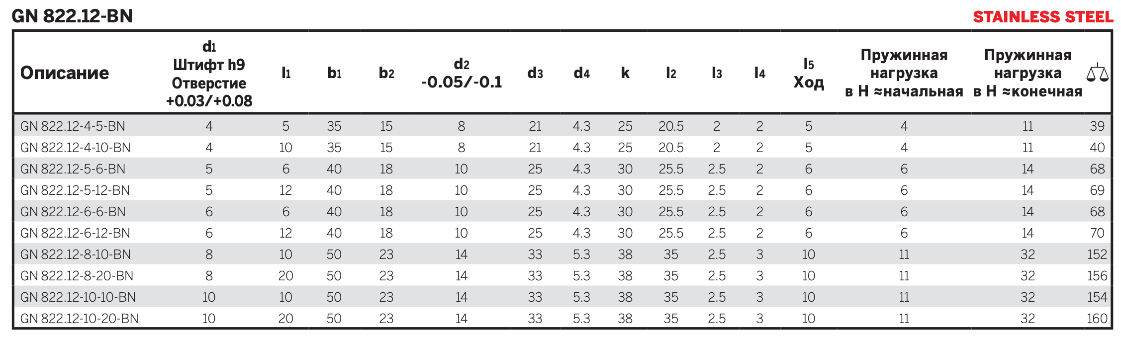 Тип BN: без фиксации в отжатом положении, с ручкой из нержавеющей стали
