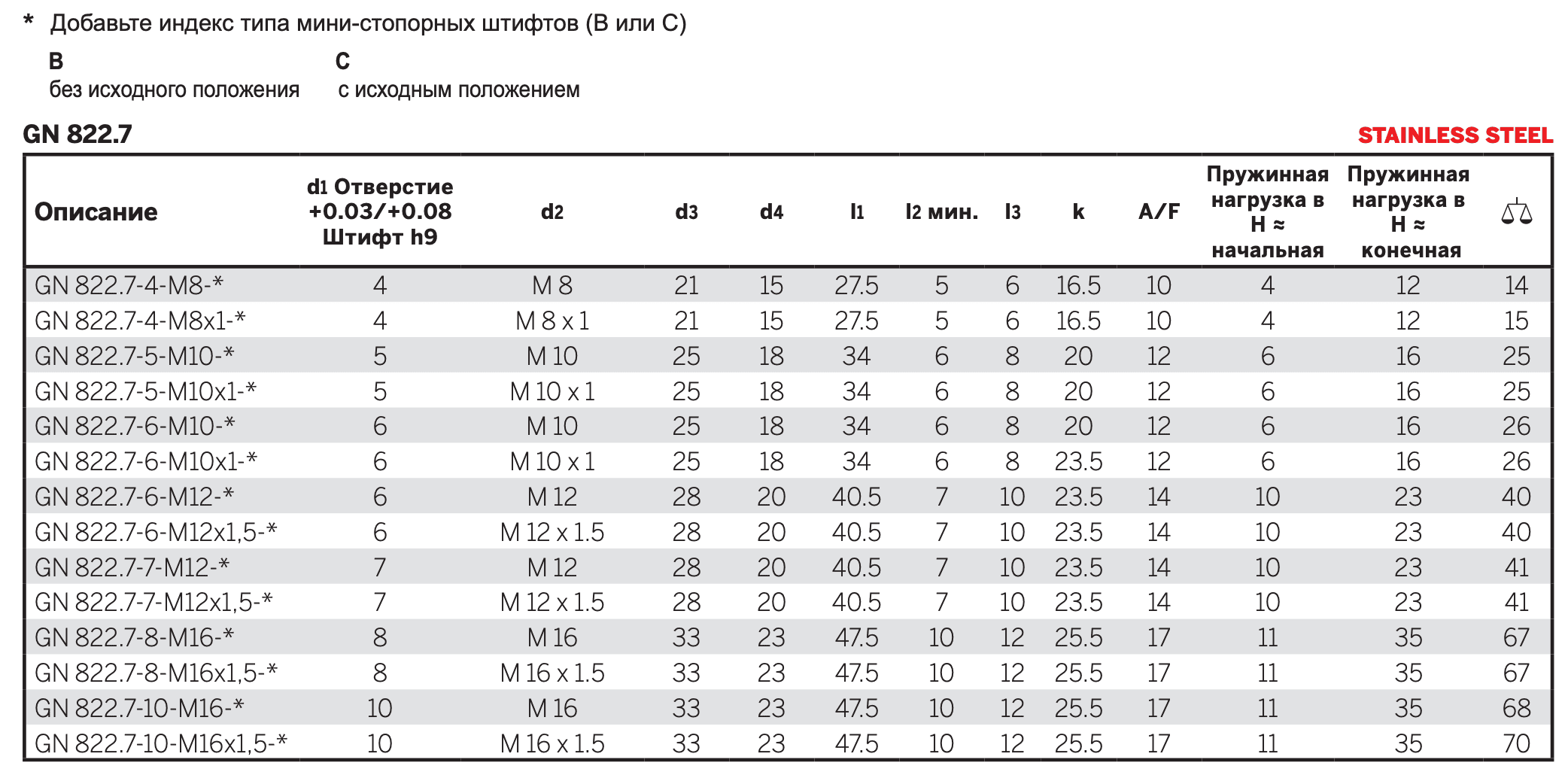 Тип BN: без фиксации в отжатом положении, с ручкой из нержавеющей стали