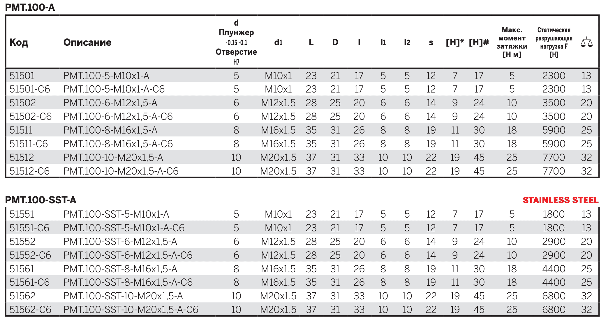 PMT.100-A:плунжер из стали с чёрной оксидной плёнкой, без контргайки.
