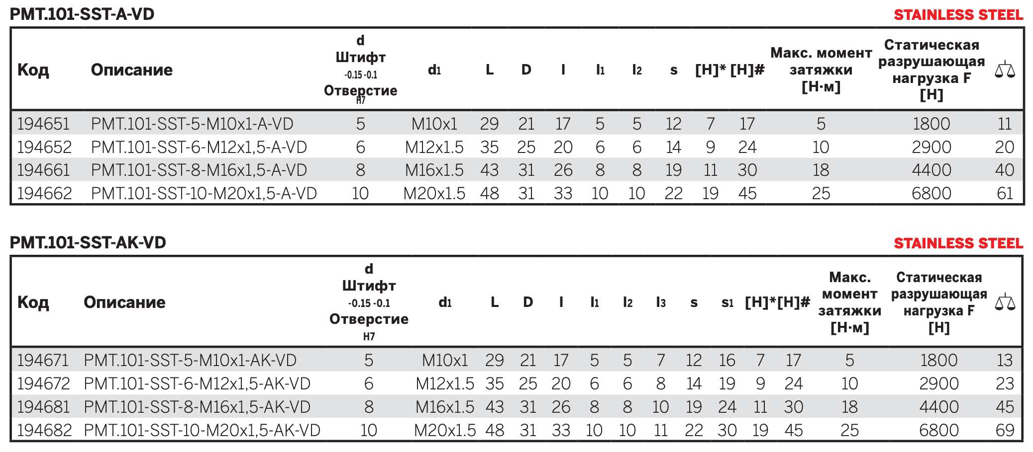 PMT.101-SST-AK-VD: с контргайкой, поставляется в разобранном виде.