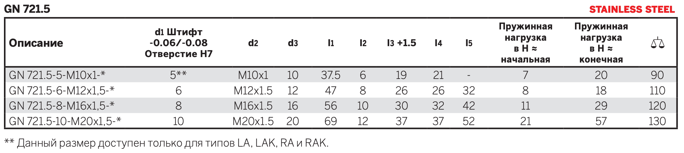 Группа изделий: Рычажные фиксаторы с кулачковым механизмом Материал: Нержавеющая сталь Диаметр штифта, мм: 5 Винт с резьбой dh, мм: M10x1
