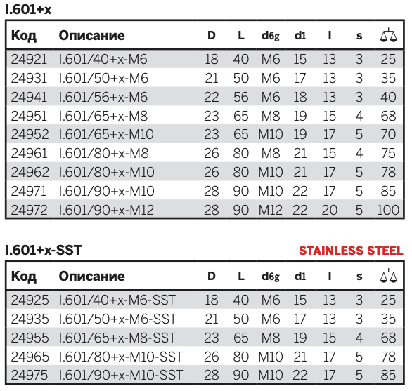 I.601+x-SST: стержень из нержавеющей стали AISI 303, шестигранное углубление на резьбовом конце.