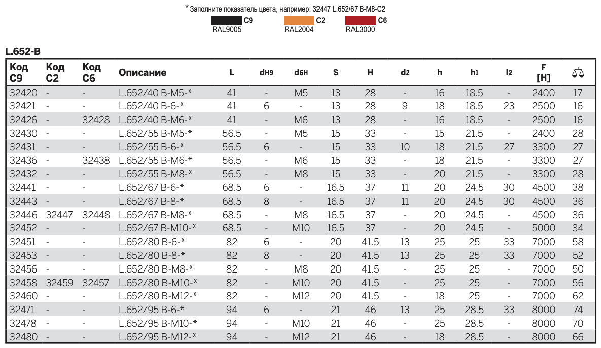 L.652-B: втулки из латуни, глухое отверстие с резьбой или без резьбы.