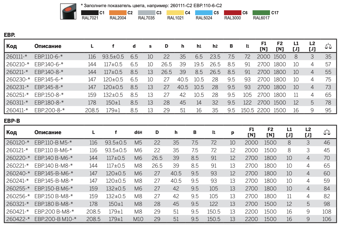 EBP.: сквозные отверстия для монтажа с внешней или внутренней стороны посредством винтов с цилиндрической головкой и шестигранным гнездом, винтов с шестигранной головкой или стандартных гаек.