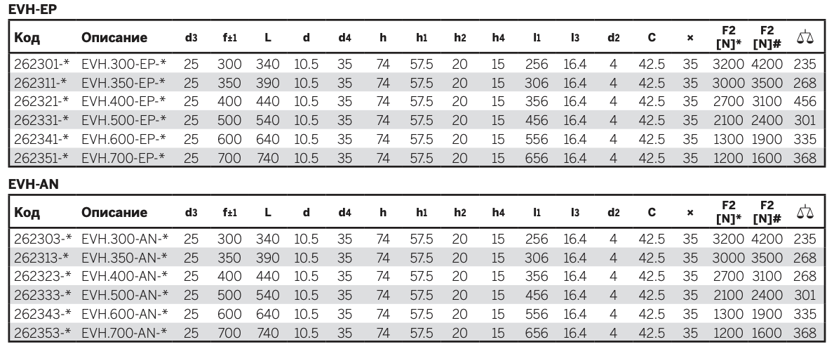 EVH-AN: анодированная алюминиевая трубка, естественный цвет.