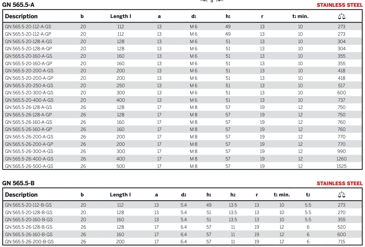 П-образная ручка GN 565.5-20-200-A-GS ELESA+GANTER