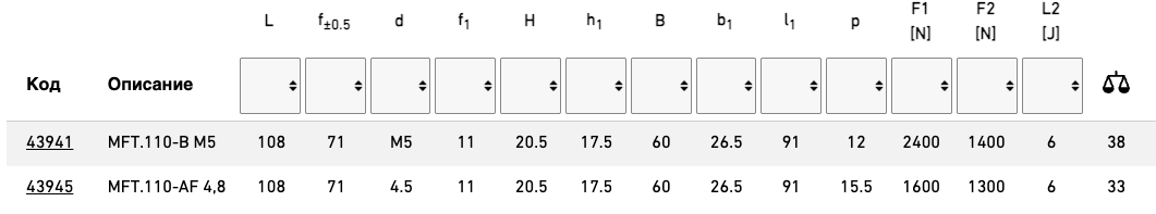MFT-B: втулка из латуни, глухие резьбовые отверстия. Установка с помощью двух винтов M5, не входят в комплект поставки.