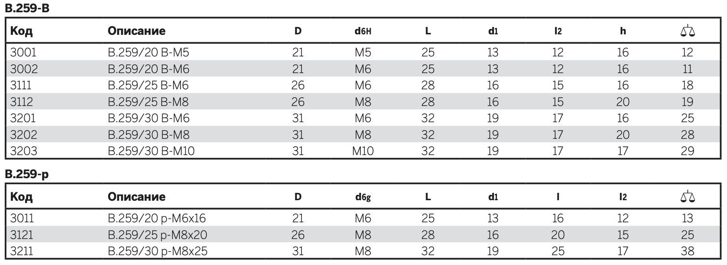 B.259-p: шпилька из оцинкованной стали с фаской на торце, стандарт UNI 947: ISO 4753 (см. Технические данные).