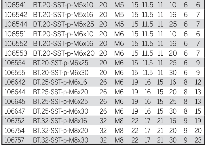 BT-SST-FP: втулка из нержавеющей стали AISI 303 со сквозным резьбовым отверстием.