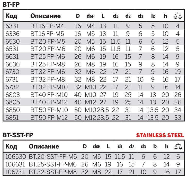 BT-SST-FP: втулка из нержавеющей стали AISI 303 со сквозным резьбовым отверстием.