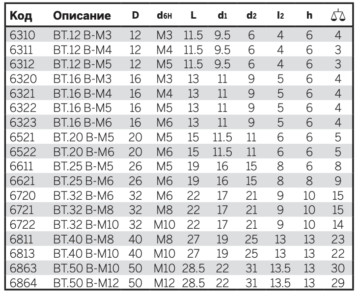 BT-SST: втулка из нержавеющей стали AISI 303 с глухим резьбовым отверстием.