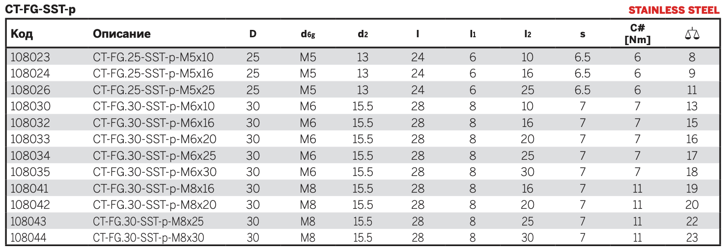 CT-FG-SST-p: Шпилька из нержавеющей стали AISI 304 с фаской на торце, стандарт UNI 947 : ISO 4753 (см. Технические данные).
