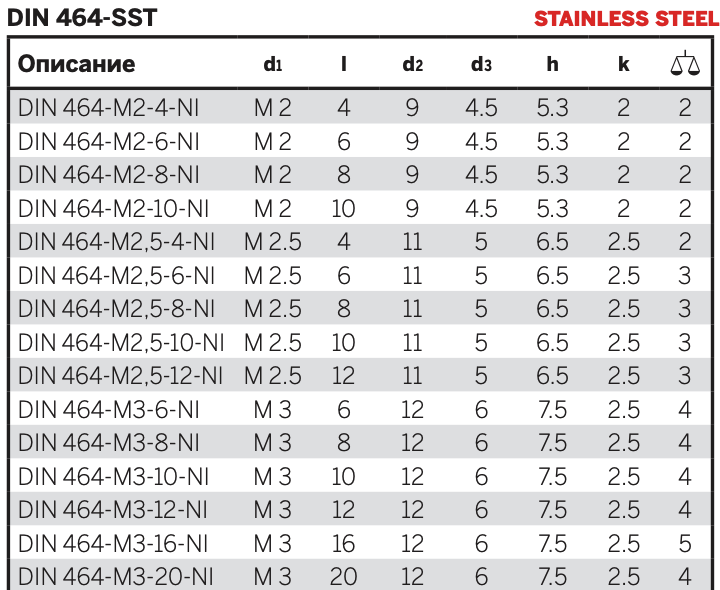 - Винт с резьбой dh, ммM2.5