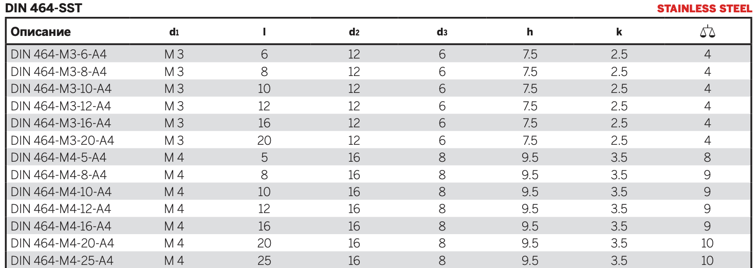 Винт с накаткой DIN 464-M3-10-A4 ELESA+GANTER