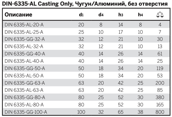 Вариант исполнения Алюминий (тип A)