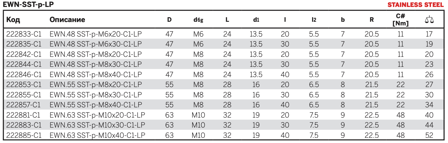 EWN-SST-LP: втулка из нержавеющей стали AISI 303 со сквозным резьбовым отверстием.