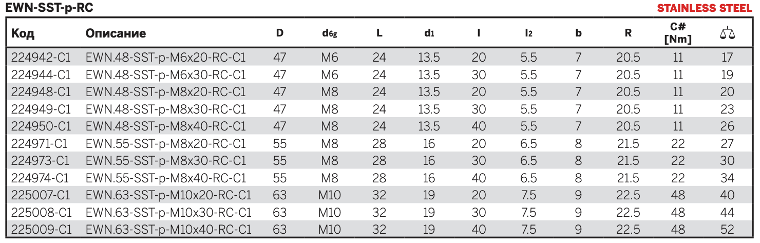 EWN-SST-RC: втулка из нержавеющей стали AISI 303 со сквозным резьбовым отверстием.