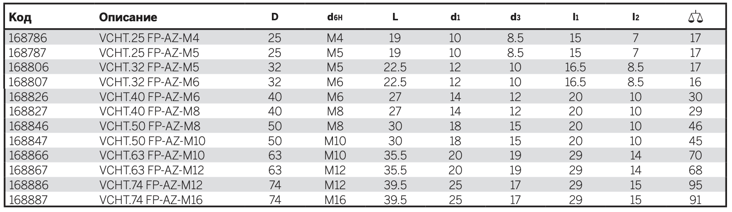 VCHT-FP-AZ-M: сквозным резьбовым отверстием.