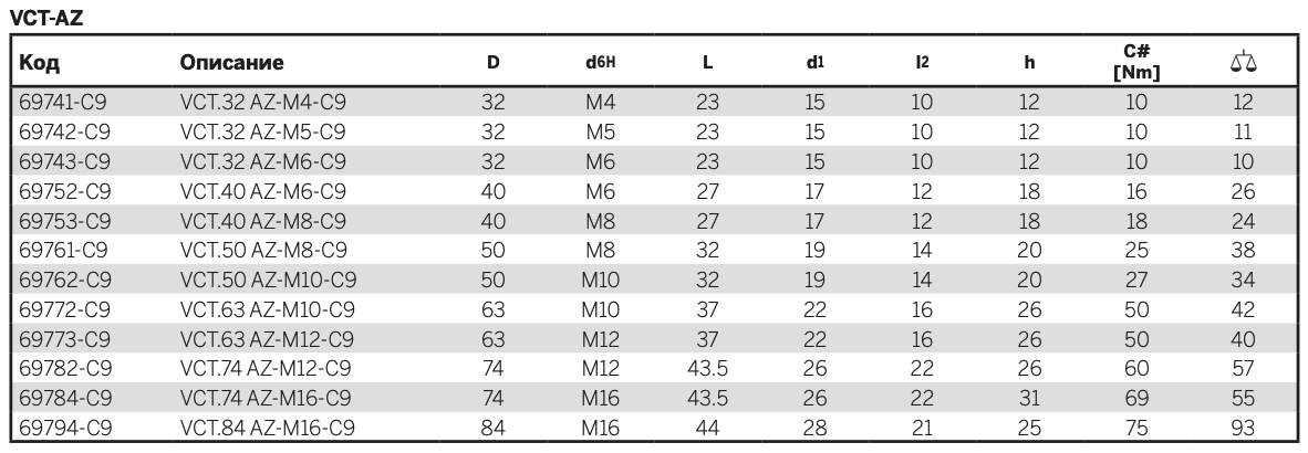 VCT-AZ: втулка из оцинкованной стали со сквозным резьбовым отверстием.
