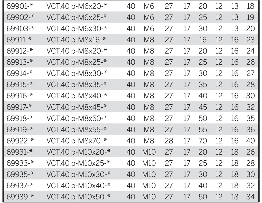 VCT-p: резьбовая шпилька из оцинкованной стали, плоский торец с фаской согласно стандарту UNI 947 : ISO 4753 (см. Технические данные).