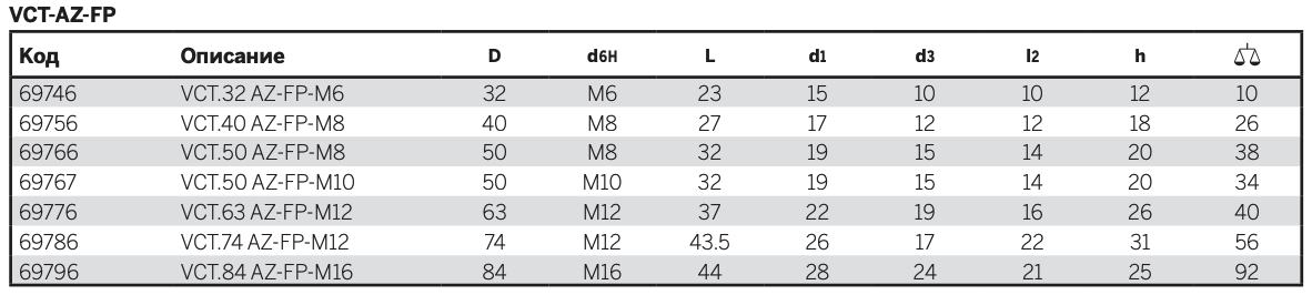 VCT-AZ-FP: втулка из оцинкованной стали, со сквозным резьбовым отверстием, без колпачка.
