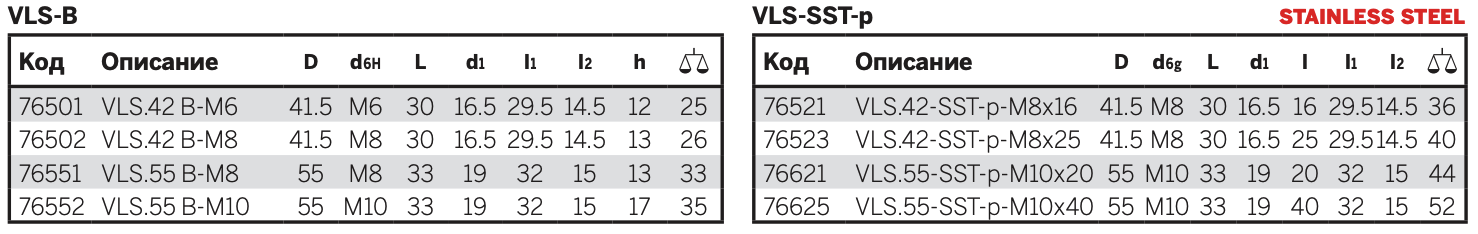 VLS-SST-p: шпилька из нержавеющей стали AISI 304 с плоским торцом и фаской по стандарту UNI 947: ISO 4753 (см. Технические данные).