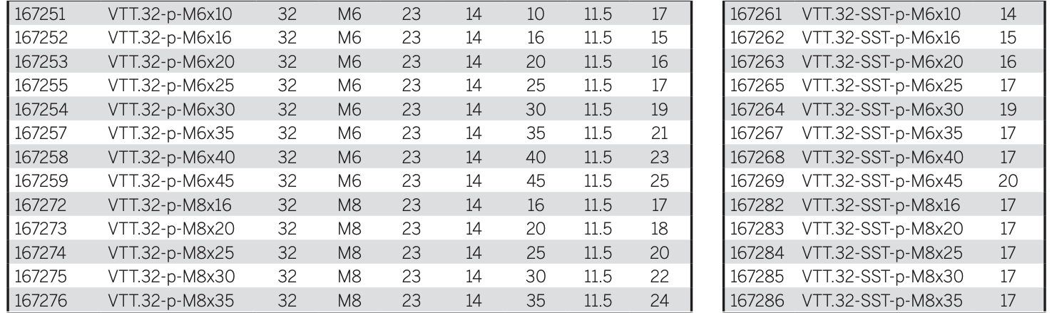 - VTT-SST: втулка из нержавеющей стали AISI 304 с глухим резьбовым отверстием.