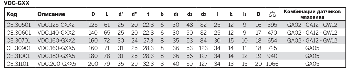 VDC-PXX+I: для индикаторов с жёстким приводом.