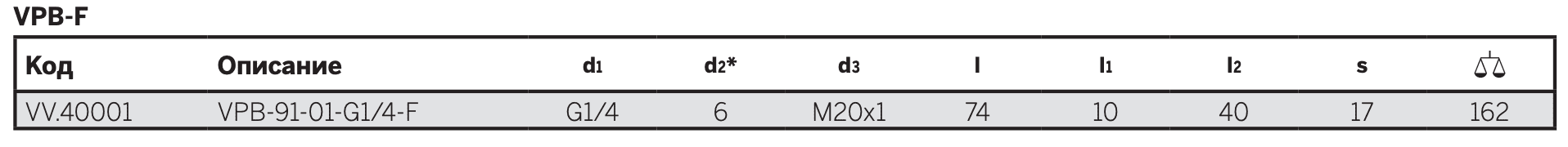 - VPB-F: соединение с внутренней резьбой и прямым быстродействующим фитингом.