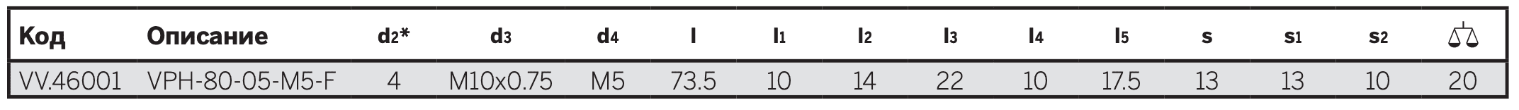 - VPH-F-SR: без фитинга.