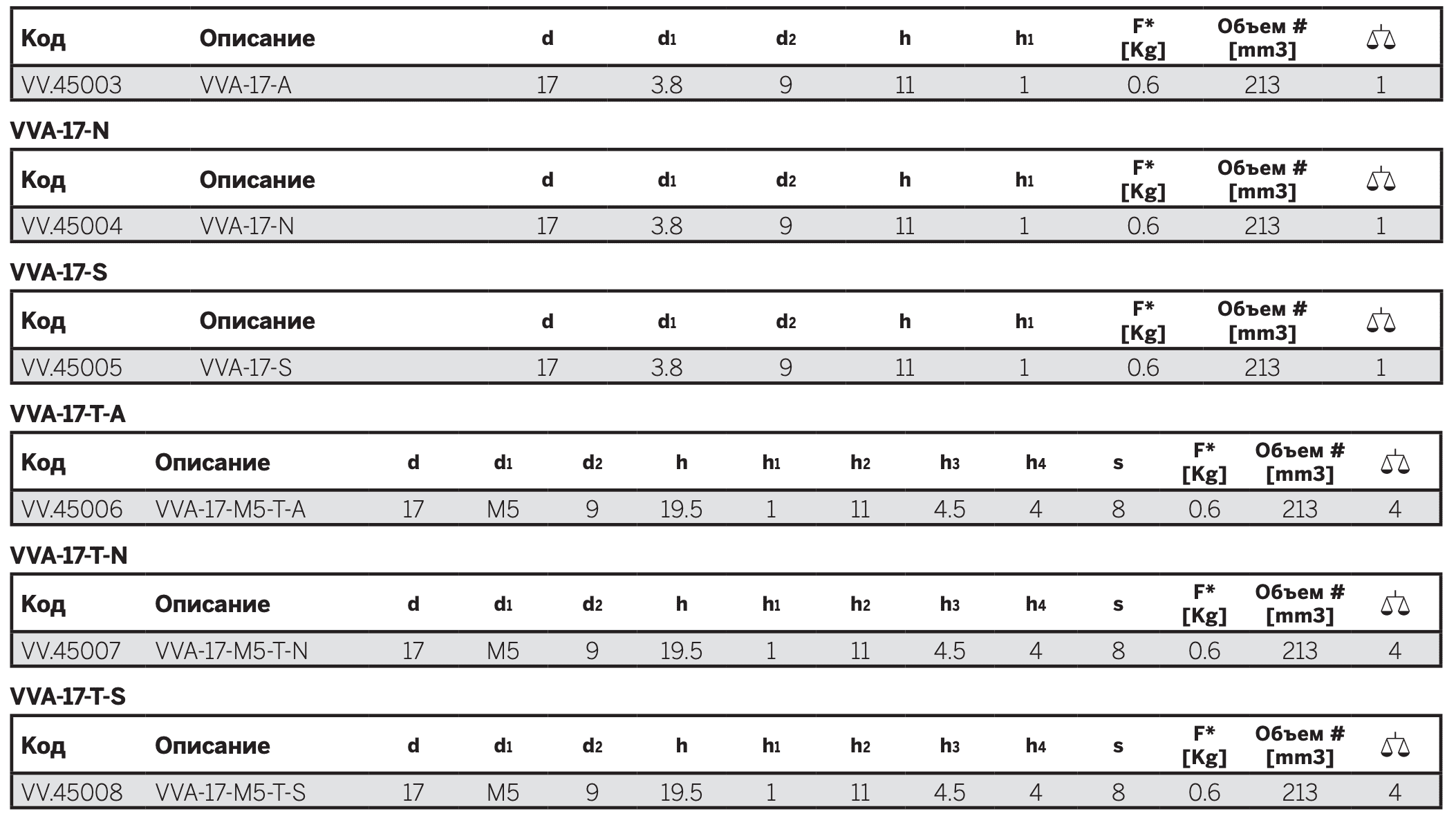 - VVA-17-T-S: силиконовый каучук, с опорой.