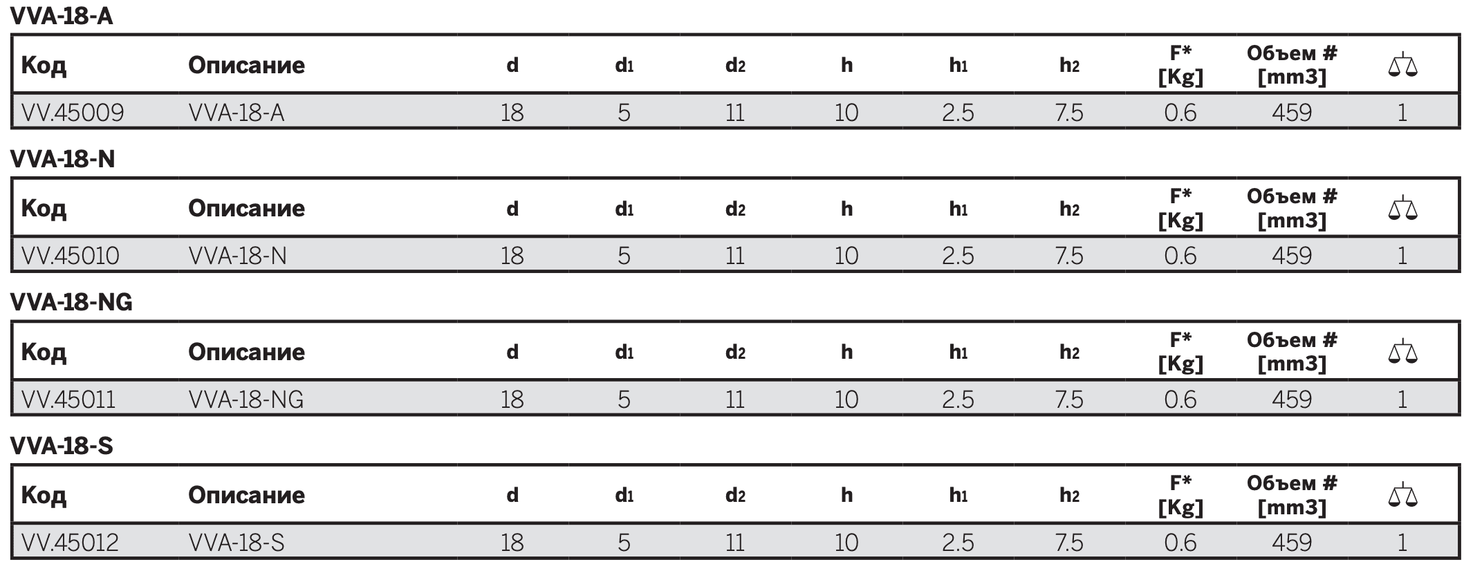 - VVA-18-A: маслостойкий каучук, без опоры.