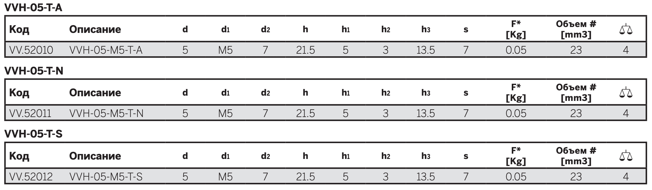 - VVH-05-T-S: силиконовый каучук, с опорой.