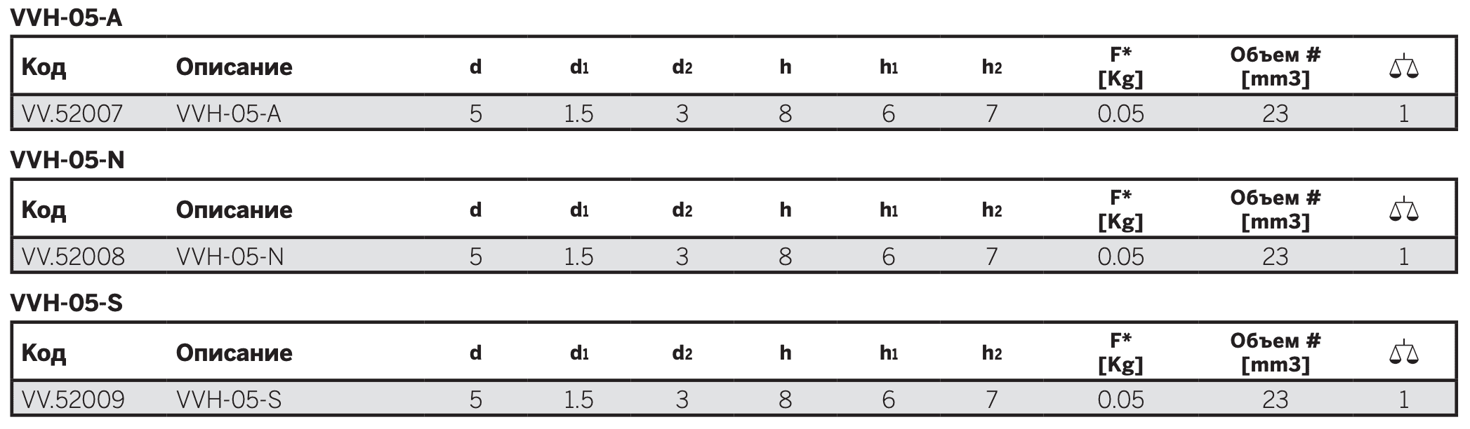 - VVH-05-N: природный каучук, без опоры.