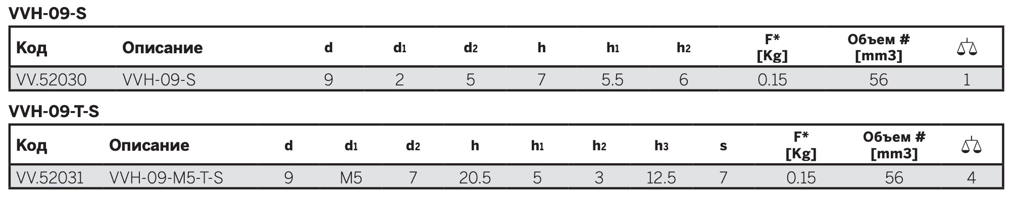 - VVH-09-T-S: силиконовый каучук, с опорой.
