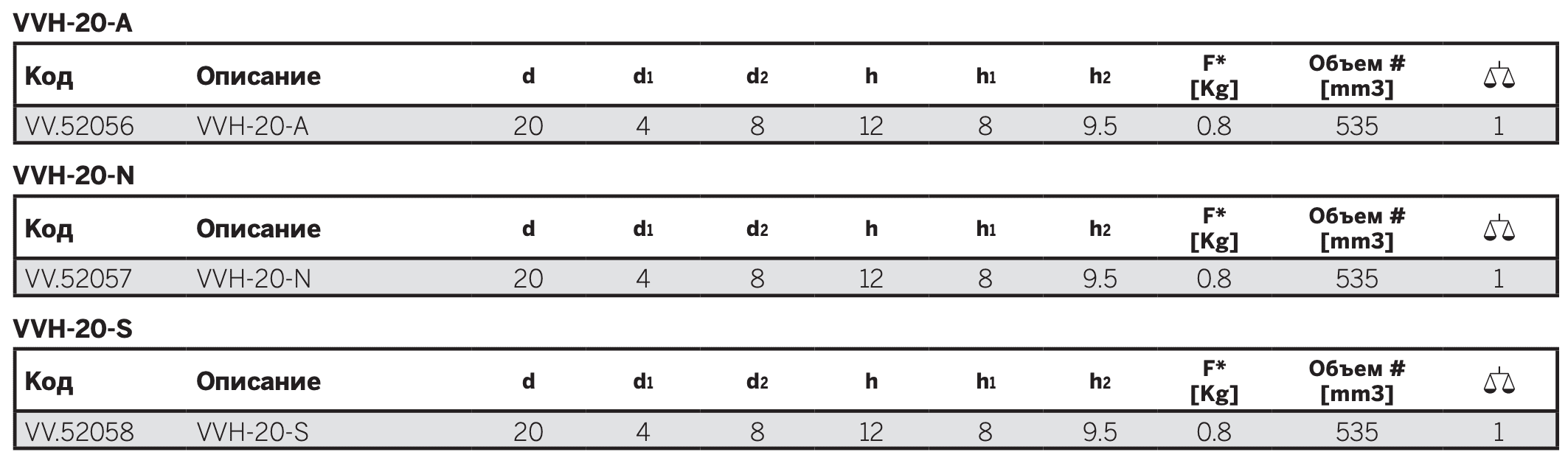 - VVH-20-N: природный каучук, без опоры.