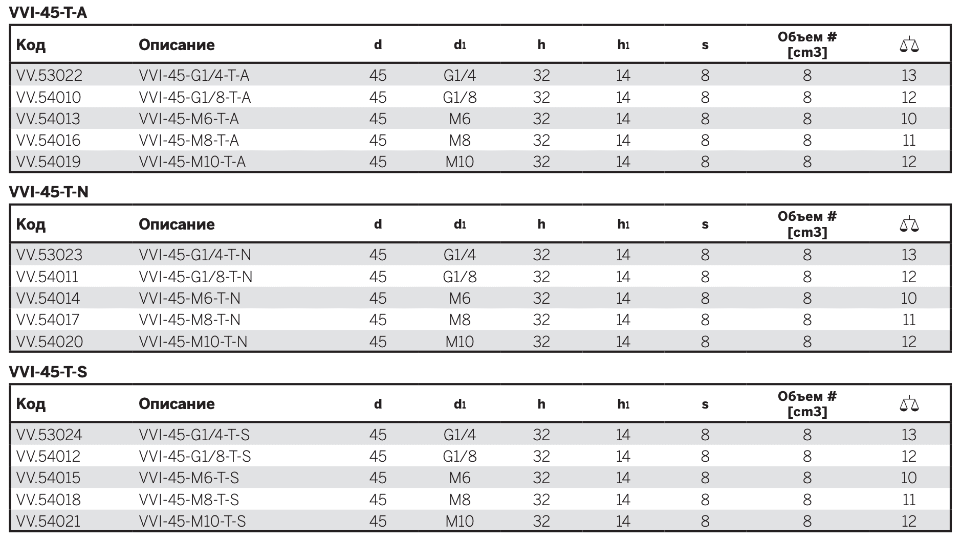 - VVI-45-T-A: маслостойкий каучук, с опорой.