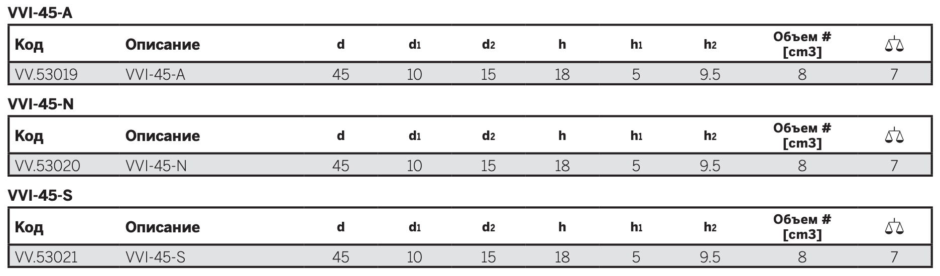 - VVI-45-A: маслостойкий каучук, без опоры.