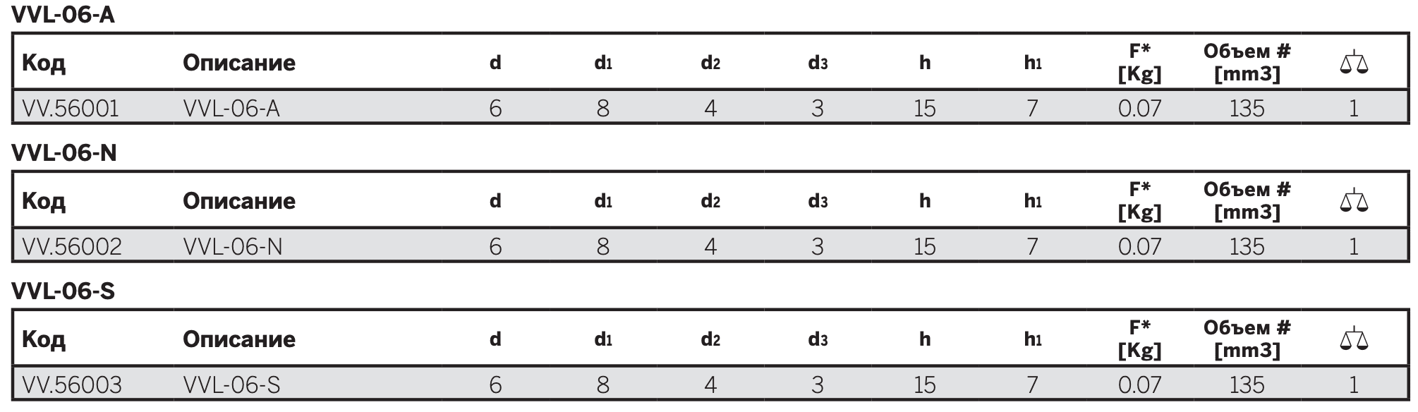 - VVL-06-S: силиконовый каучук, без опоры.