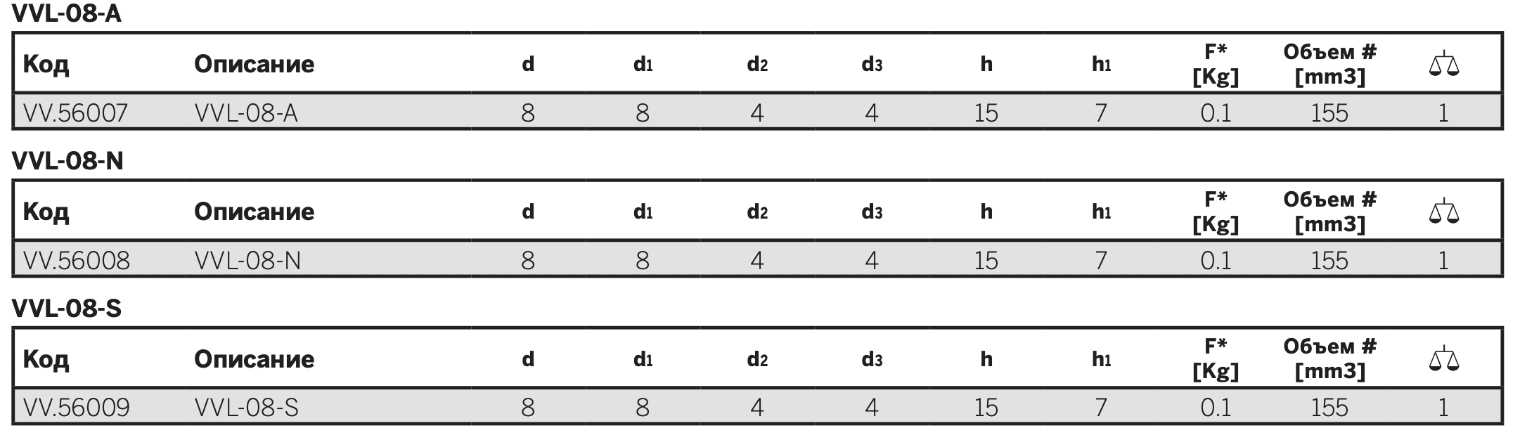 - VVL-08-T-S: силиконовый каучук, с опорой.