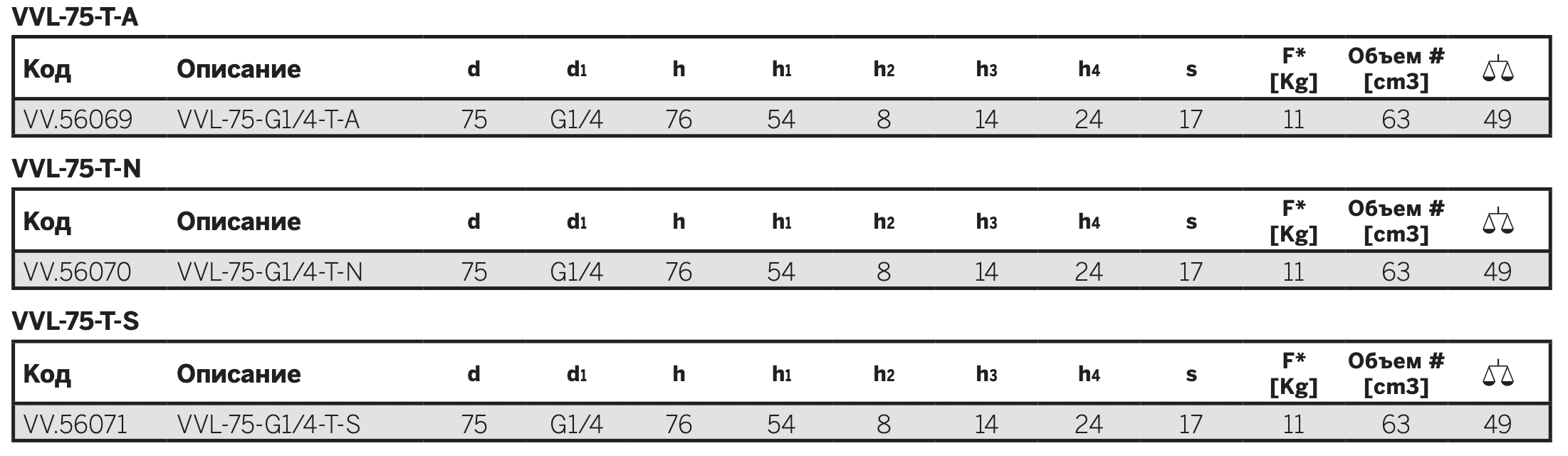 - VVL-75-T-S: силиконовый каучук, с опорой.