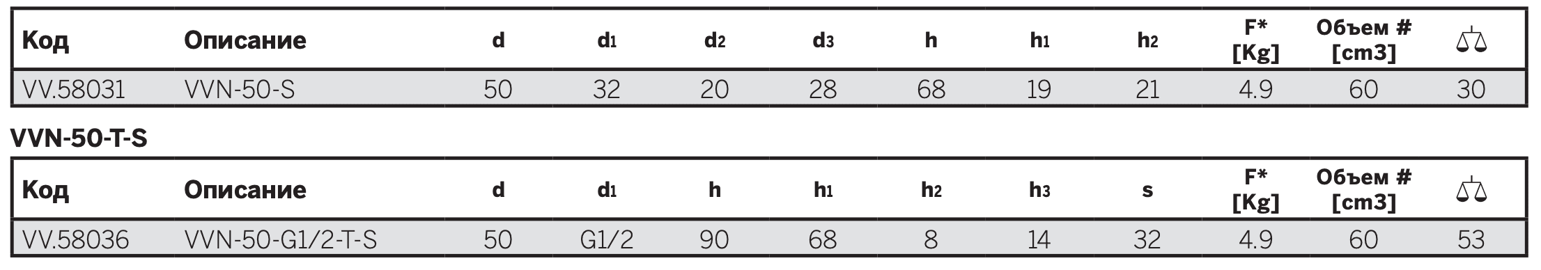 - VVN-50-T-S: силиконовый каучук, с опорой.