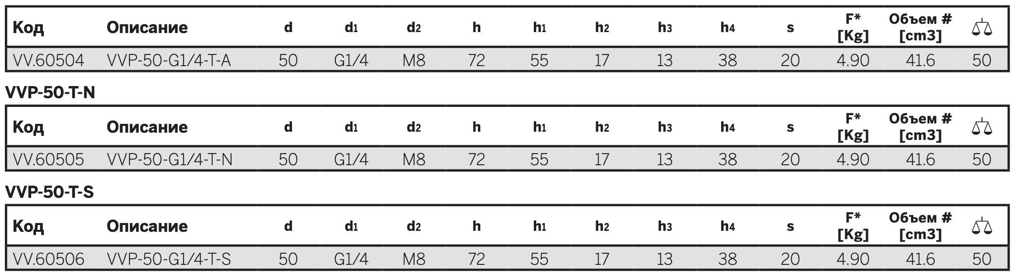 - VVP-50-T-S: силиконовый каучук.