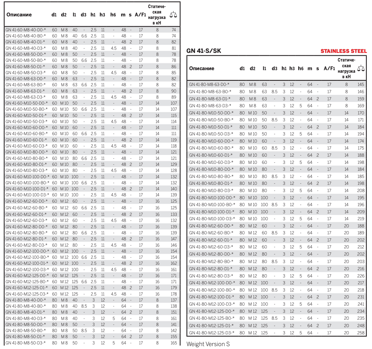 - Вариант исполнения S: без гайки, внешний шестигранник в основании