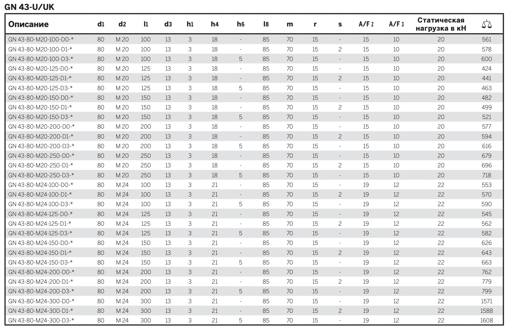 - Вариант исполнения UK: с гайкой, шестигранное углубление сверху, лыска под ключ в основании